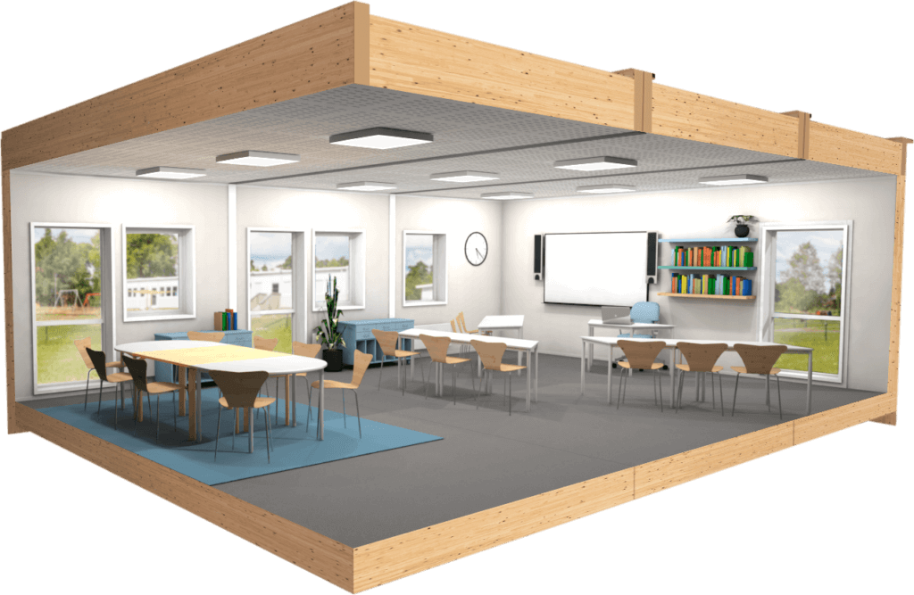 Med våra skolmoduler får ni moderna lokaler med stora ljusinsläpp, lugn och tyst inlärningsmiljö samt fantastisk ventilation. Allt för att uppnå bästa möjliga studiero. Och allt är inflyttningsklart på 60 dagar.